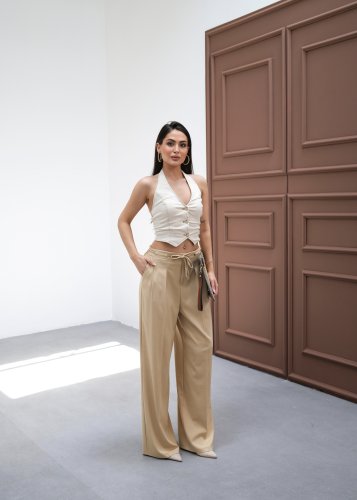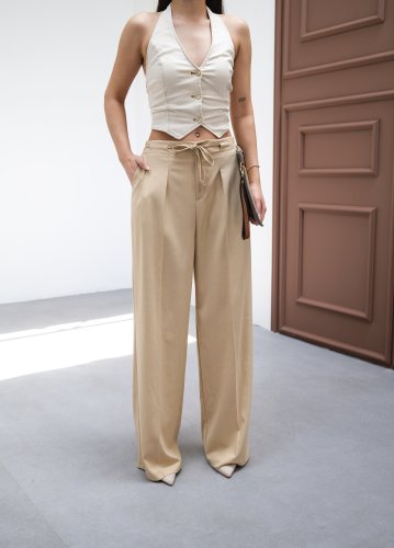 Beli Lastik Ve Bağcikli Geniş Paça Pantolon